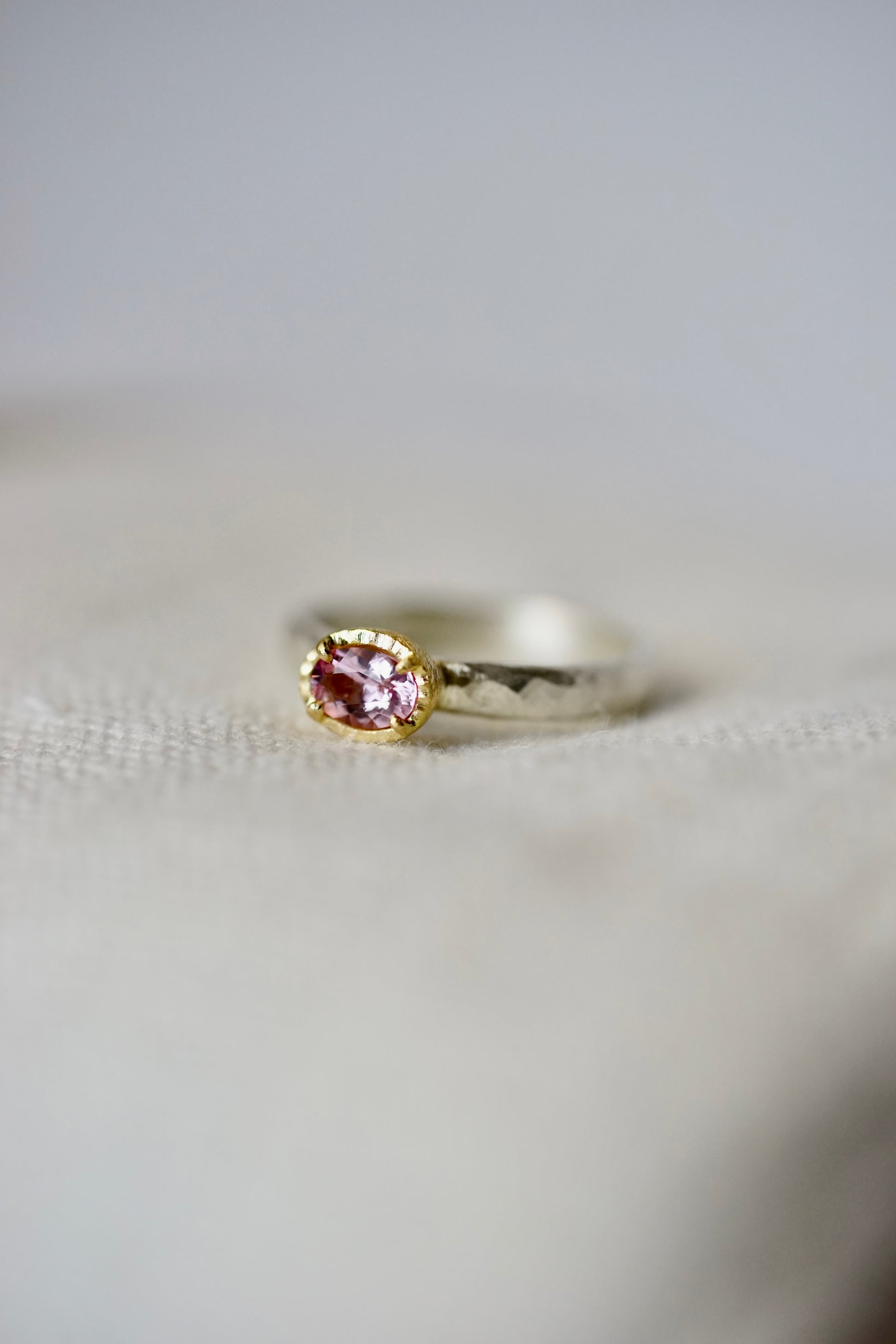 18ky mount .36ct Flaming Morganite on sterling band - size 6.5