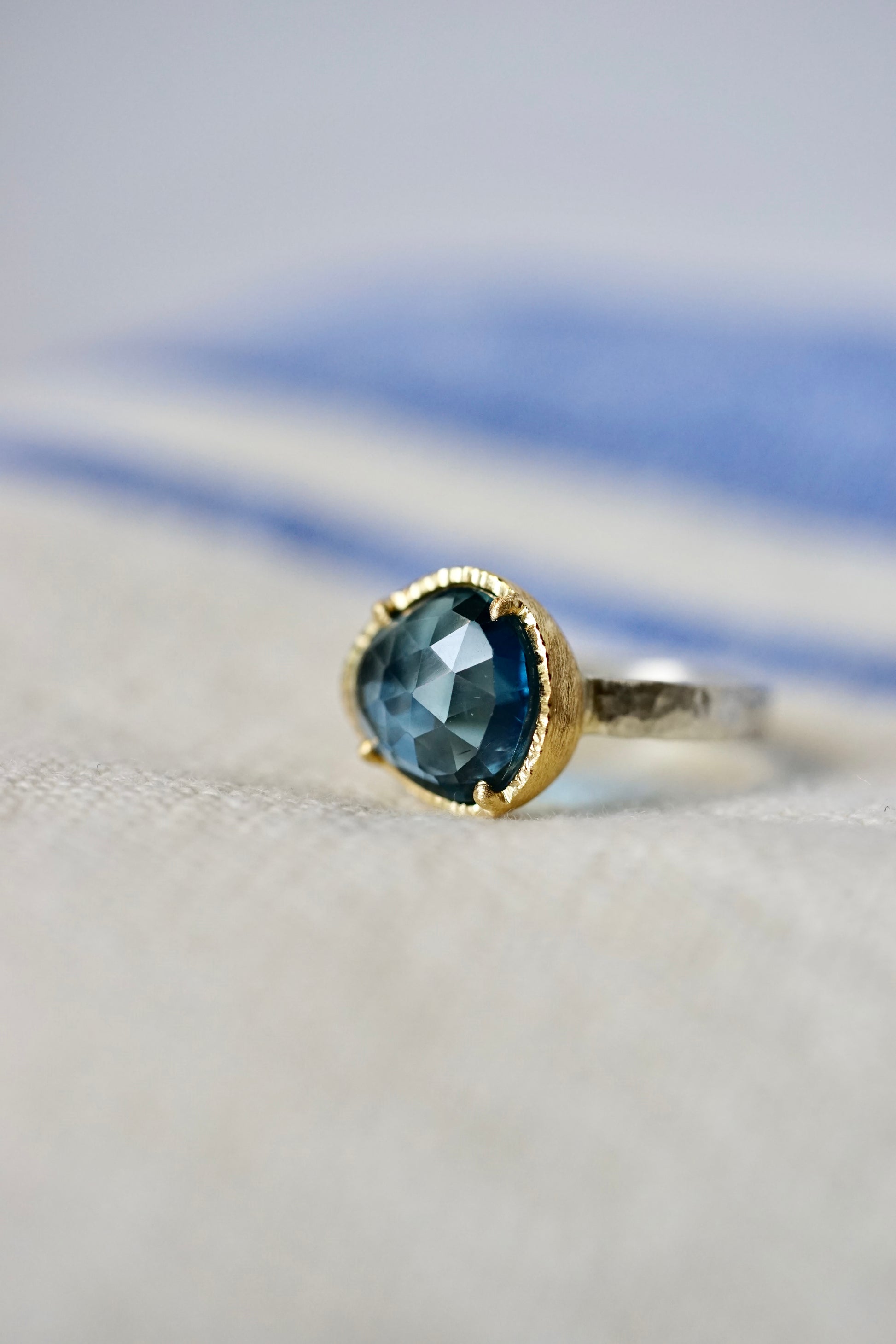 18ky mount 5.1ct blue topaz on a sterling band - size 7