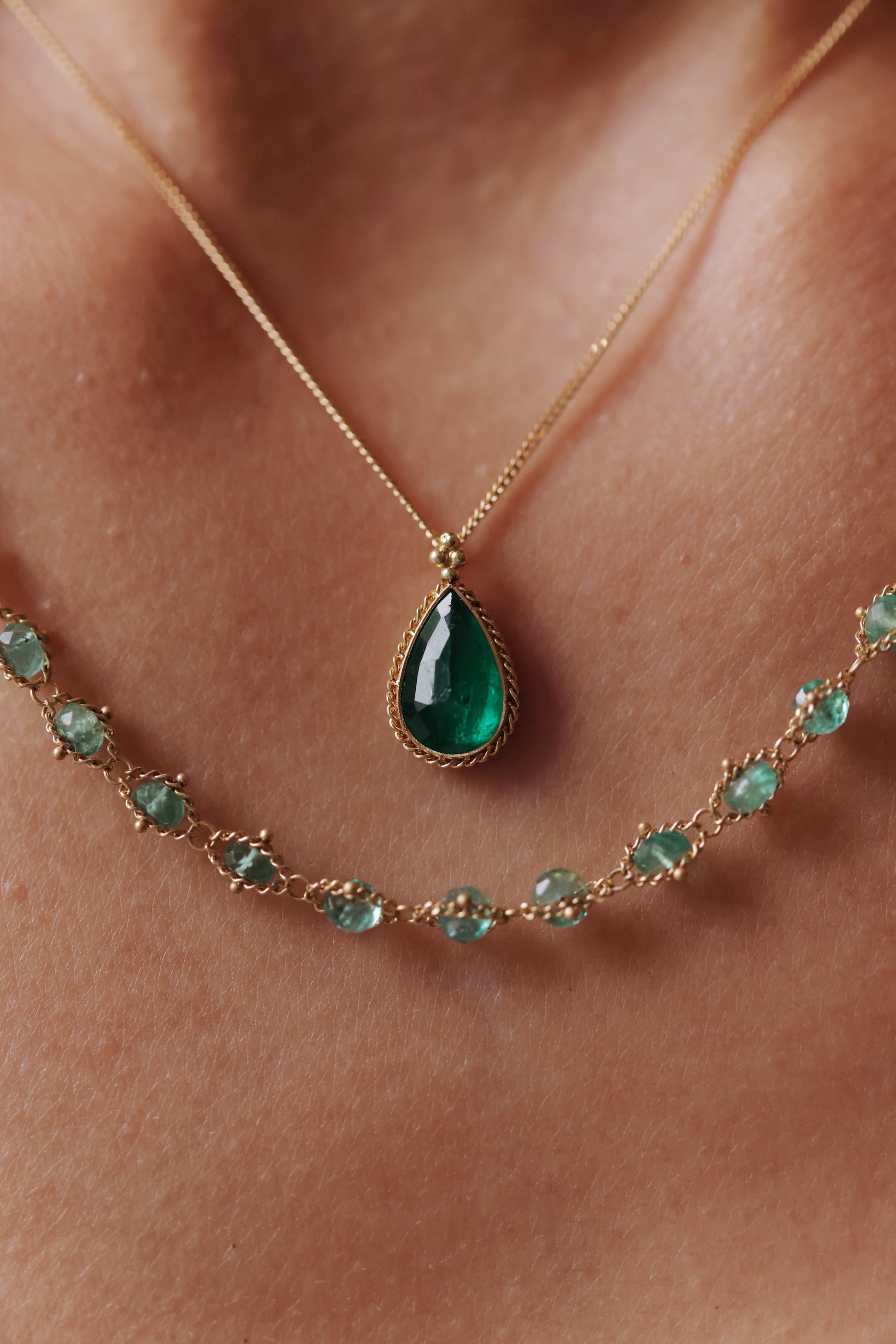 One of a Kind 1.34 ct Emerald Necklace in 18k gold