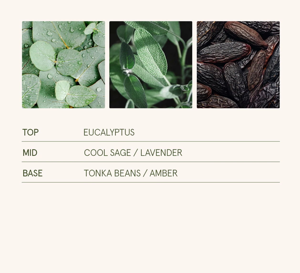 Top: Eucalyptus | Middle: Cool Sage, Lavender | Base: Tonka Beans, Amber.gift