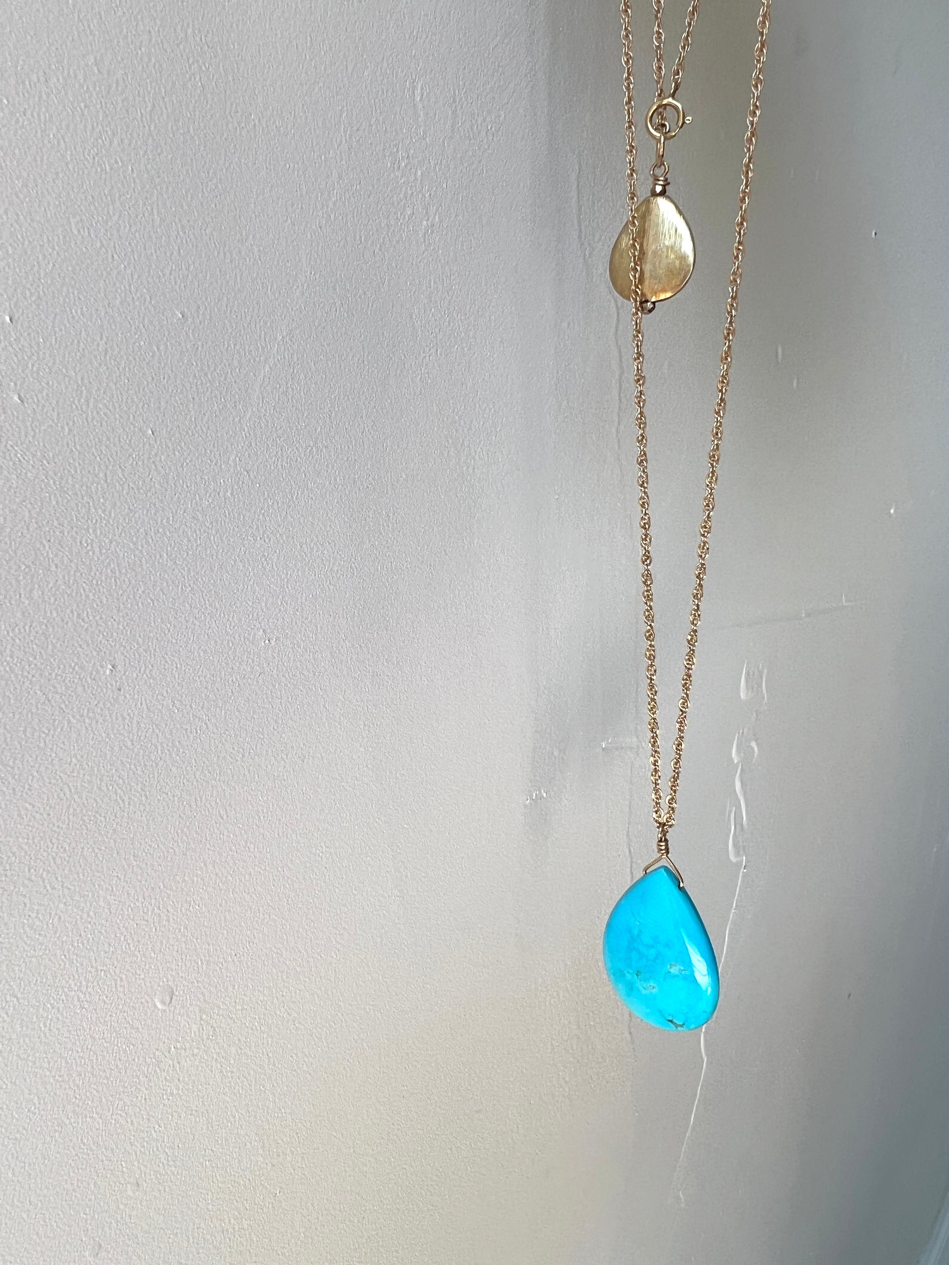 Rock Stella - Sleeping Beauty Turquoise Ballast Necklace with Gold Vermiel Charm on 14k gold filled rope chain