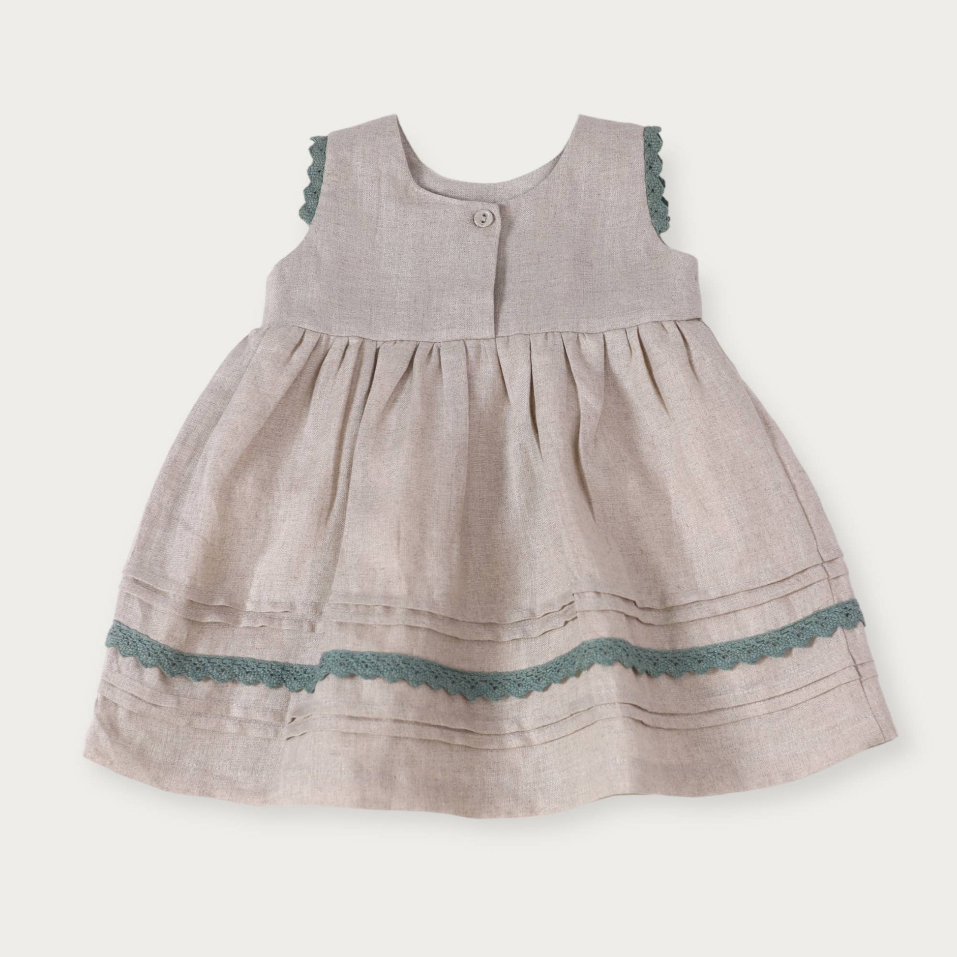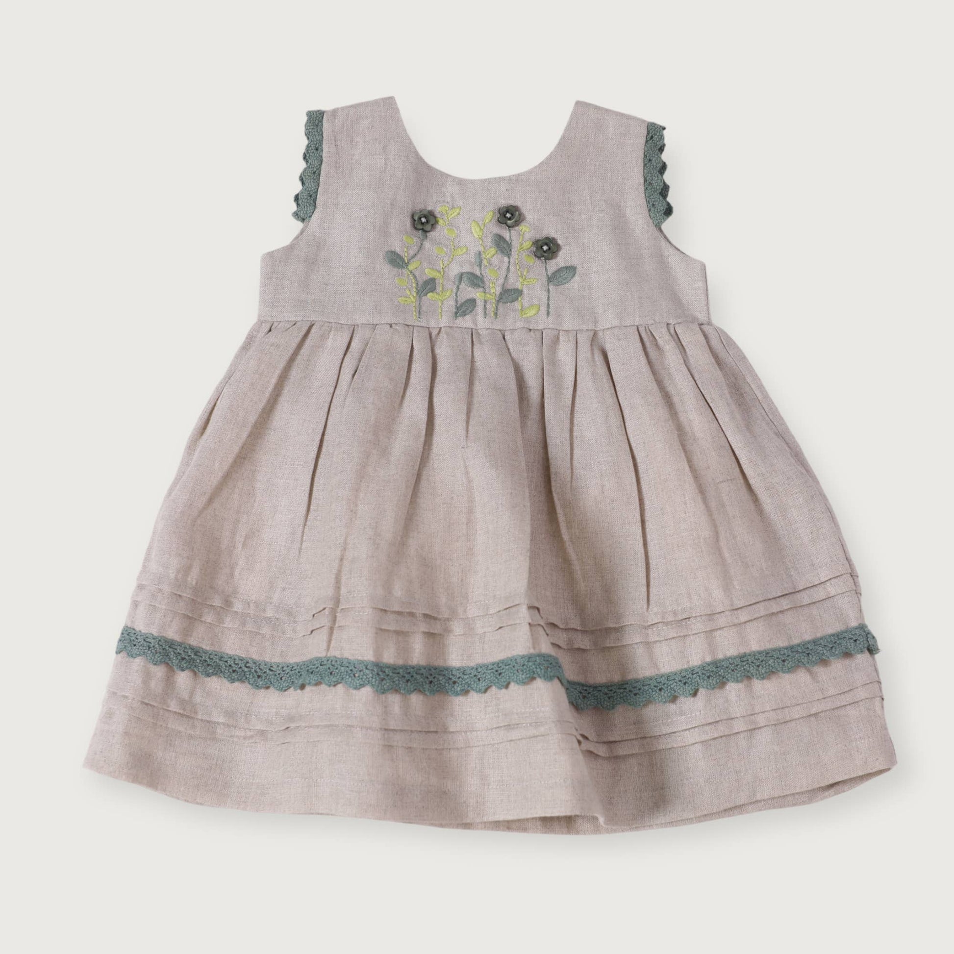 Nature's beauty, stitched with love. Adore our natural linen baby dress adorned with delicate floral embroidery. Pure elegance for your little one!