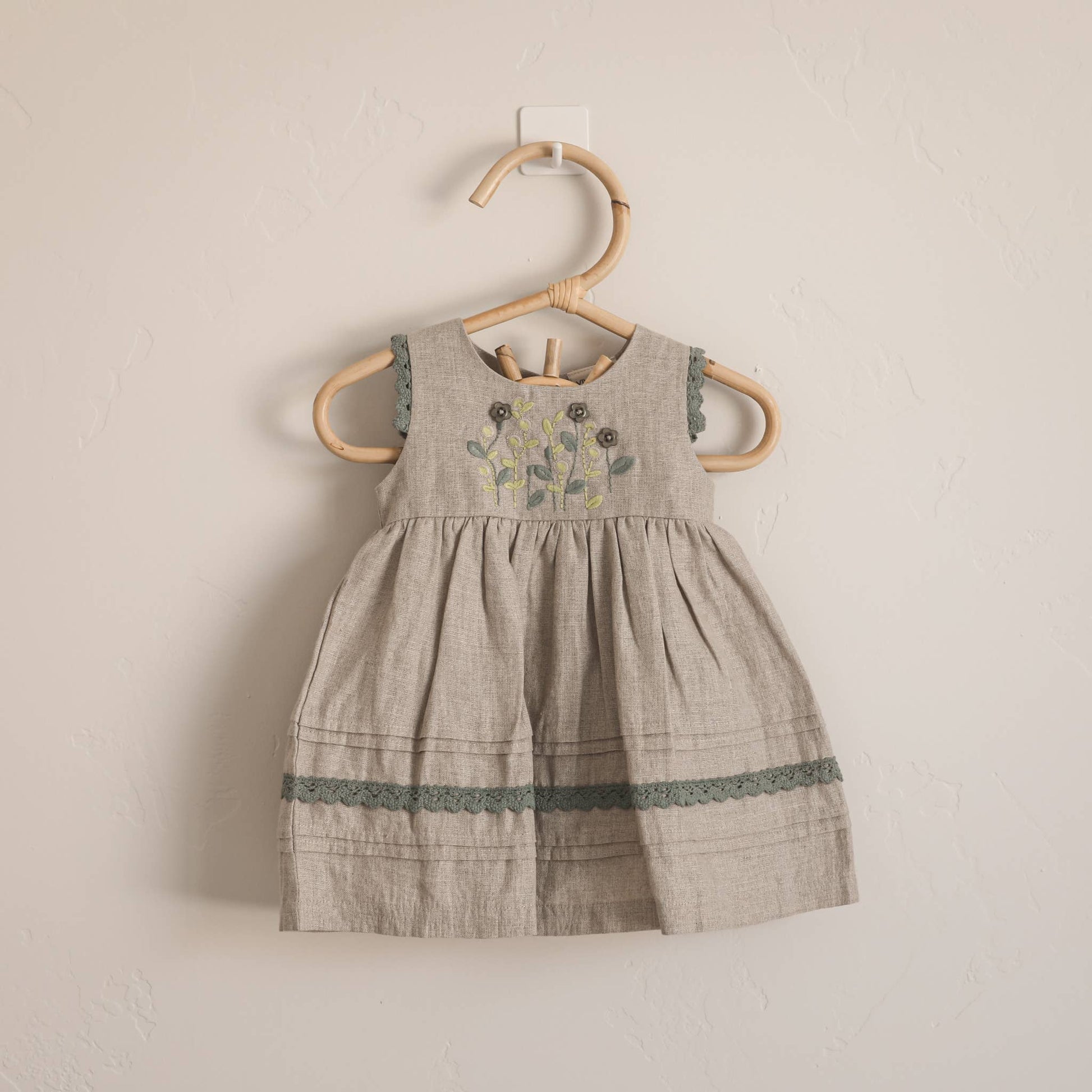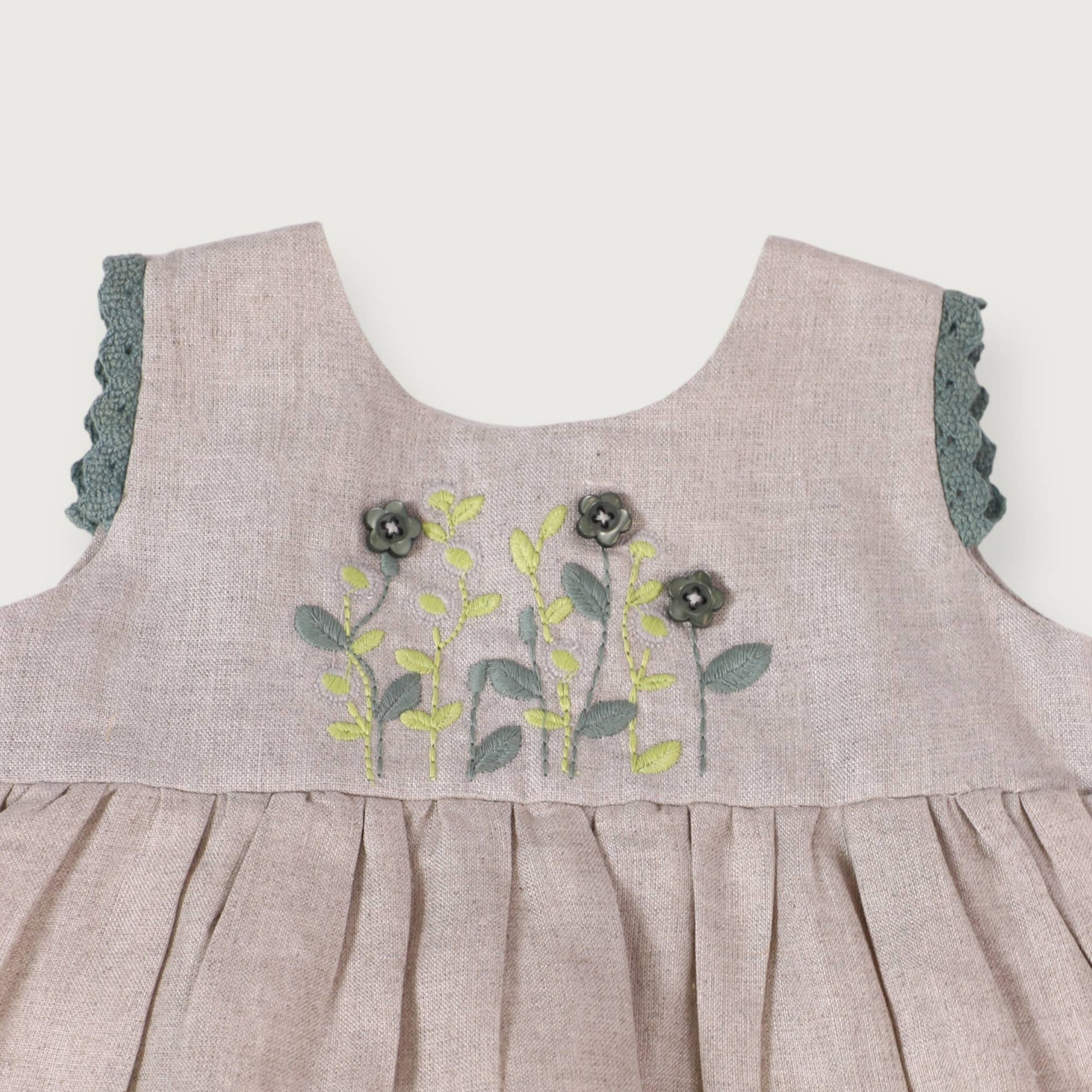 Sylvie Embroidered Linen Baby Dress+Bloomer (Organic Cotton)