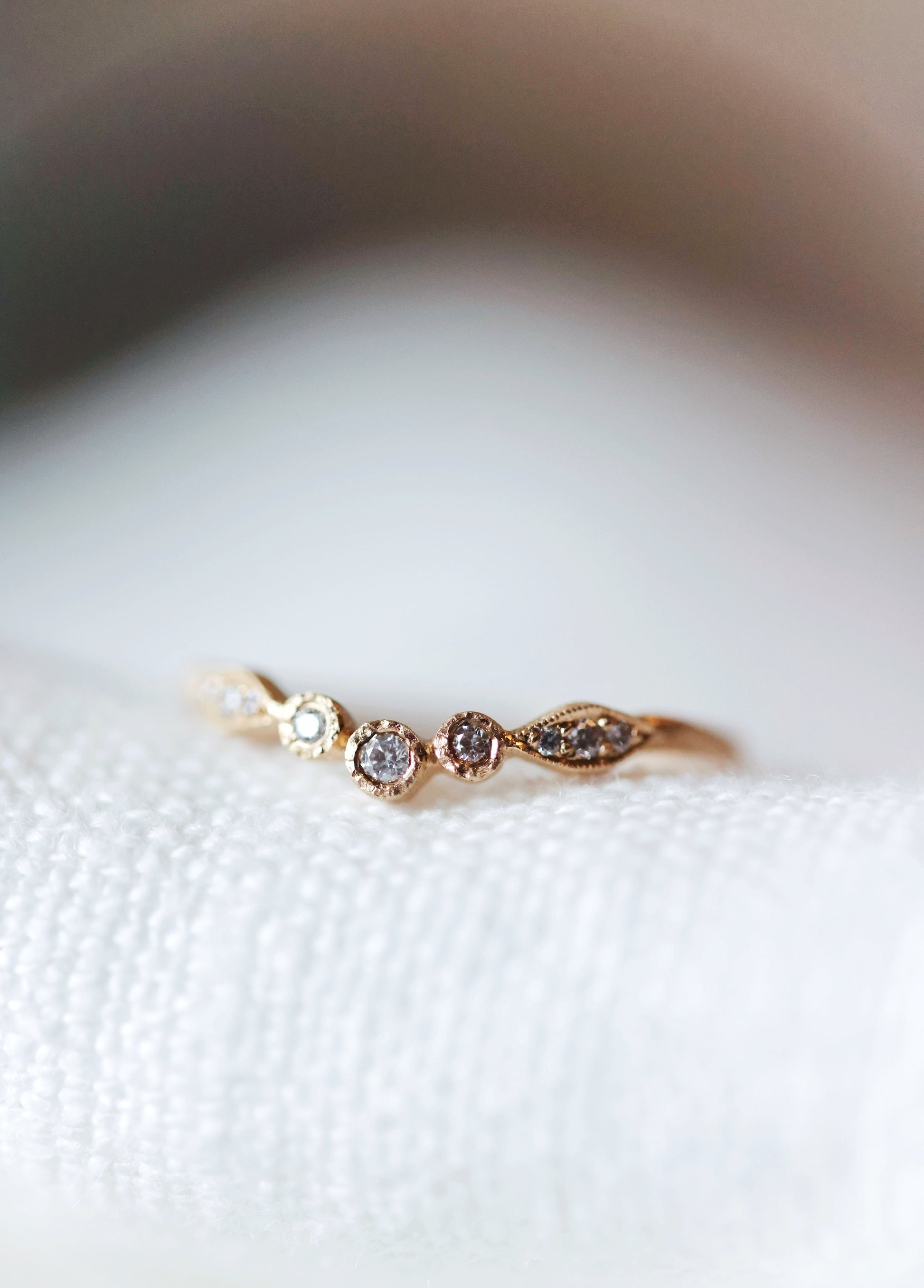 Yasuko Azuma - 18ky, 3 bezel/leaf curve ring, 0.1ct diamonds - size 6.5
