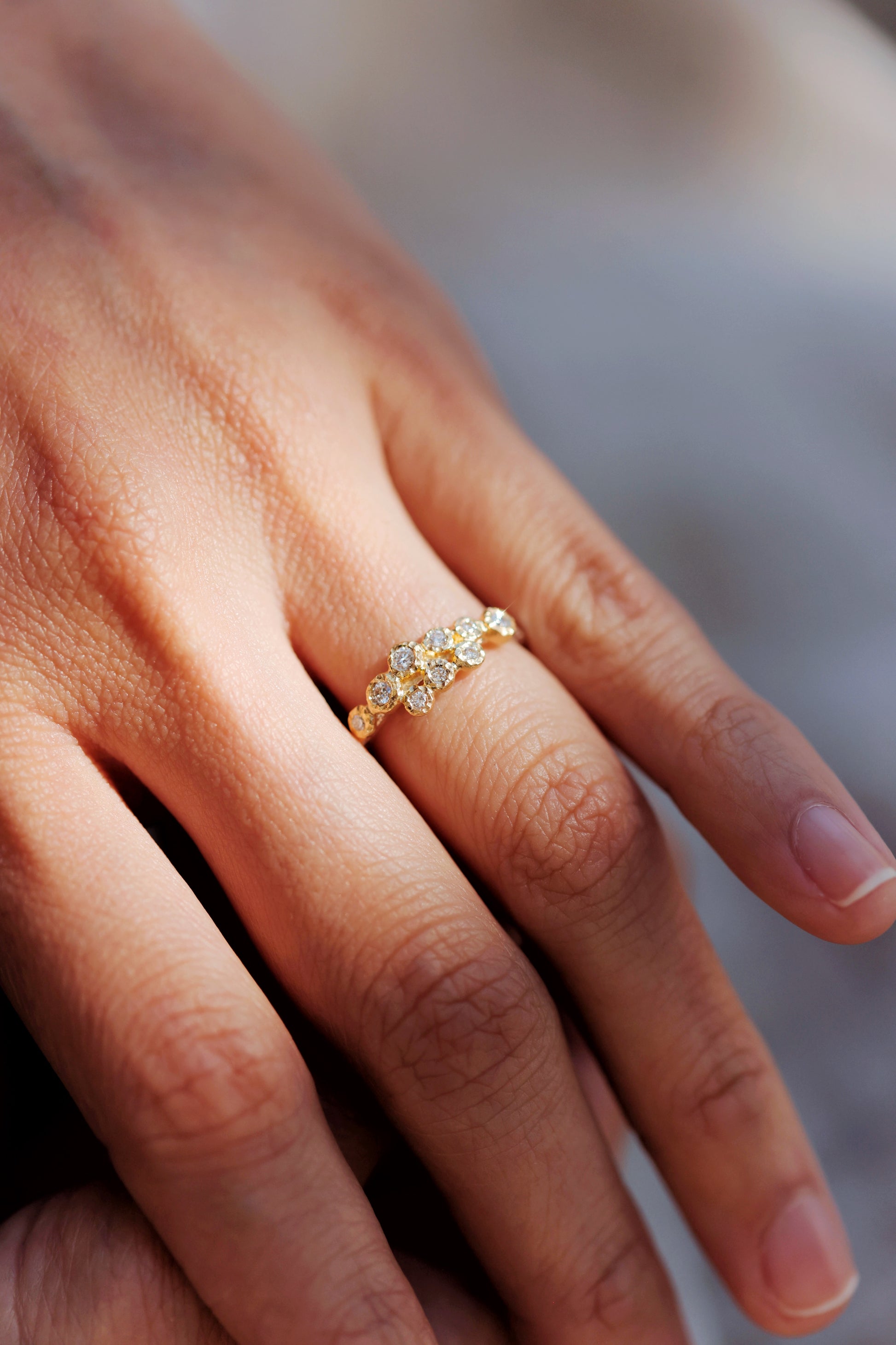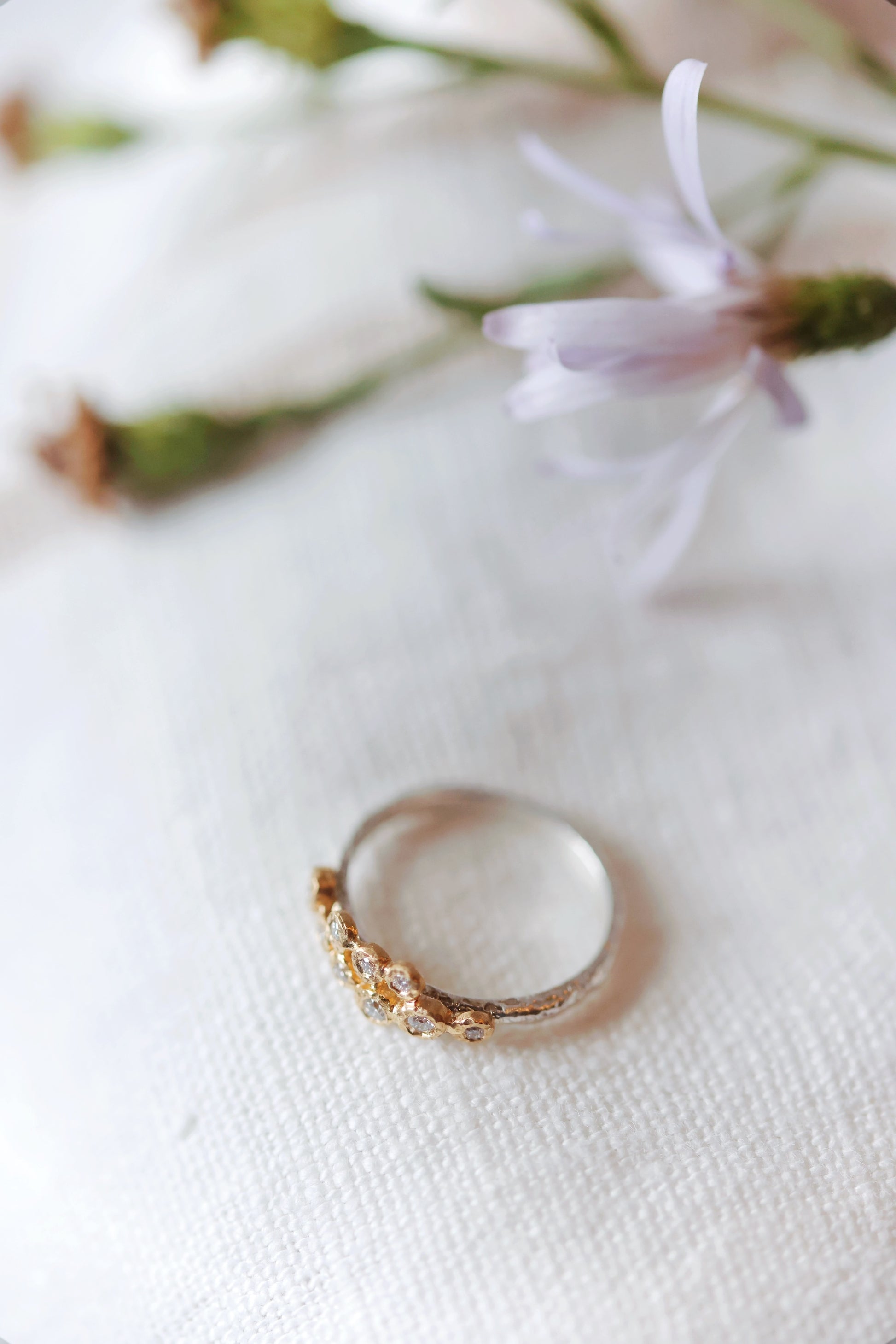 Yasuko Azuma - 18ky 9-bezel, 0.16ct diamonds, ss textured band, size 6.5