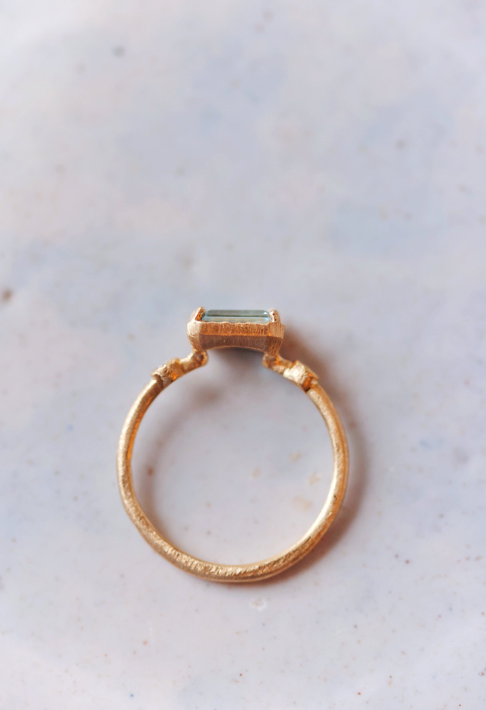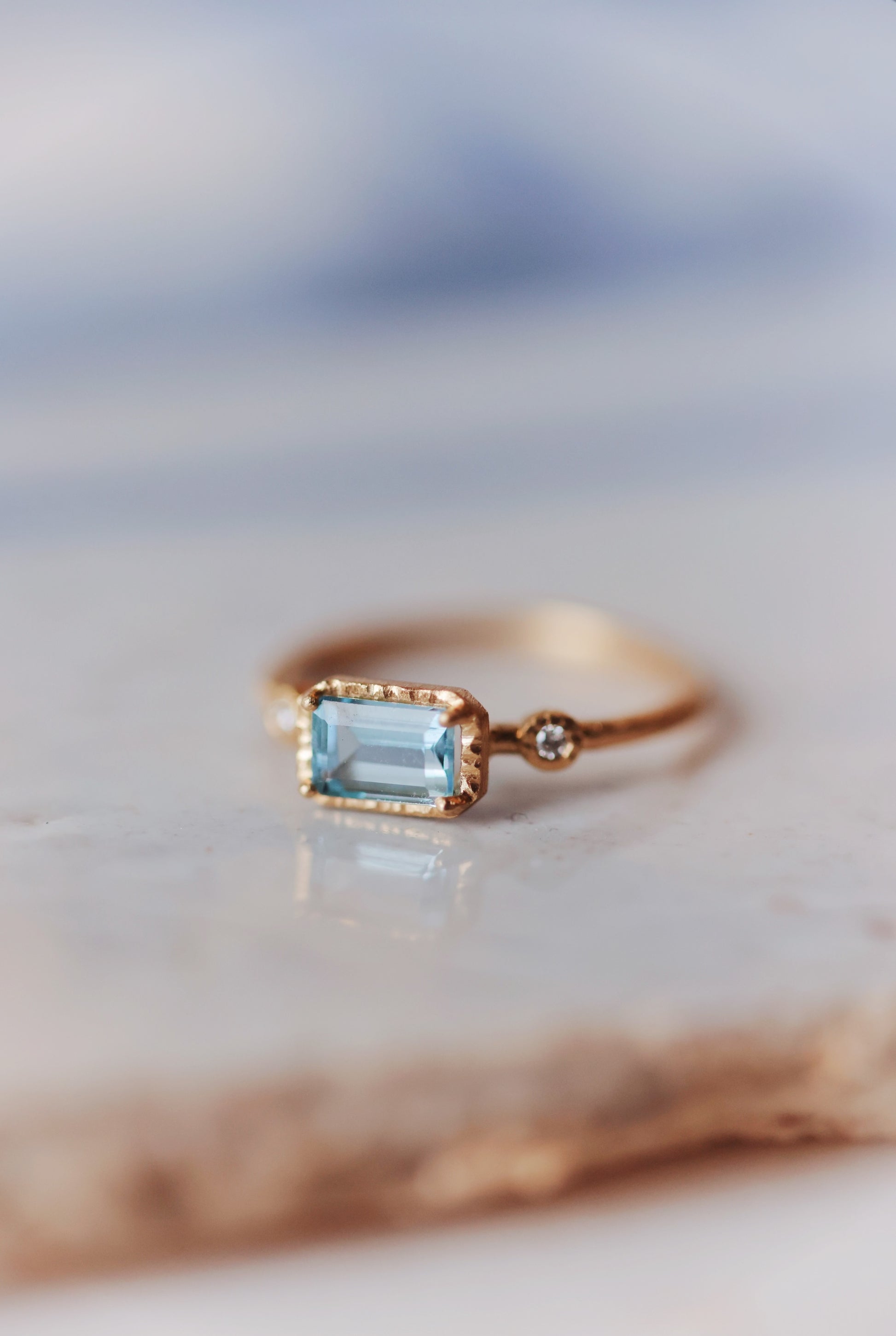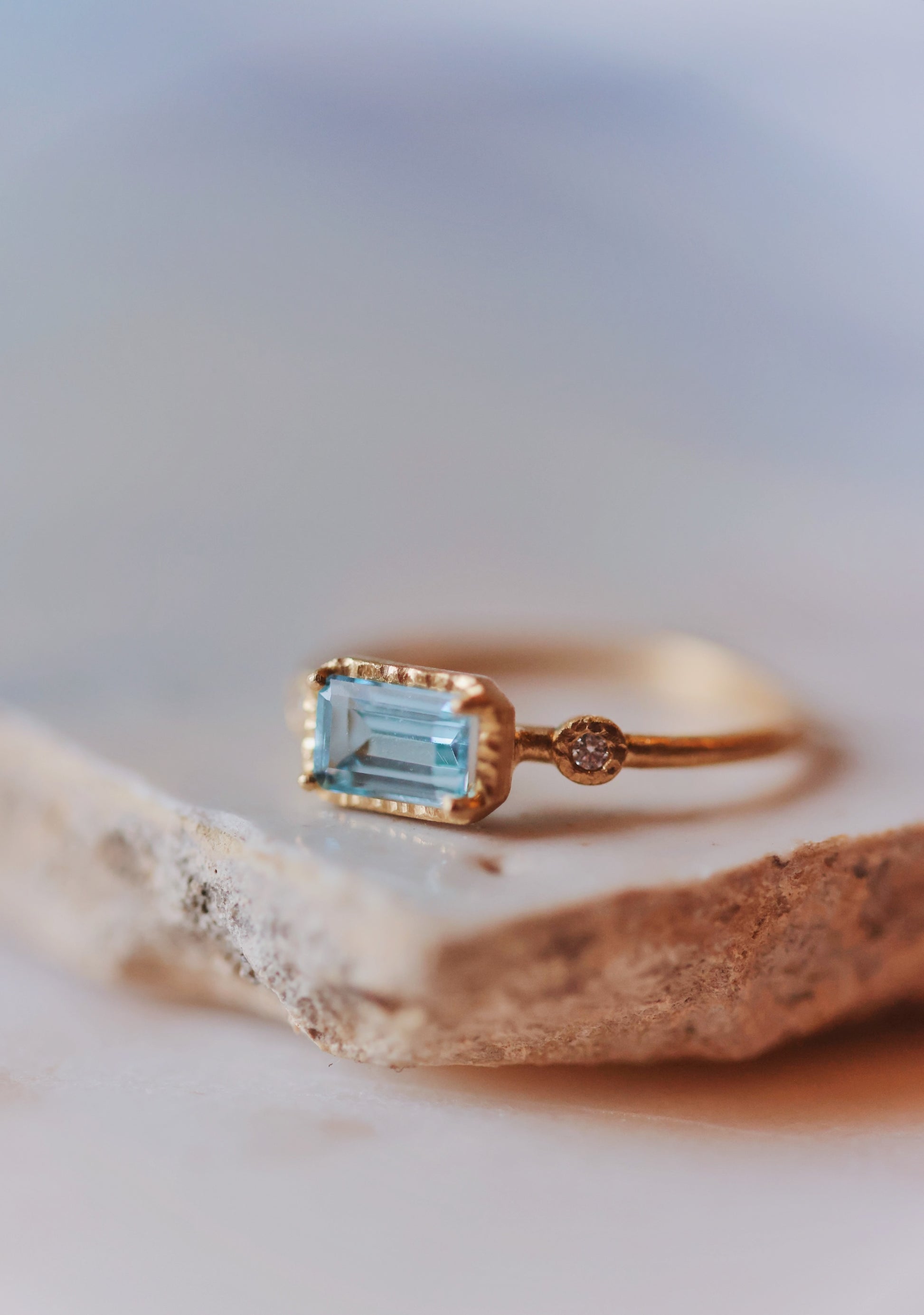 Yasuko Azuma - 0.26ct Aquamarine small w/ satellite diamonds - size 6.5 - 18ky